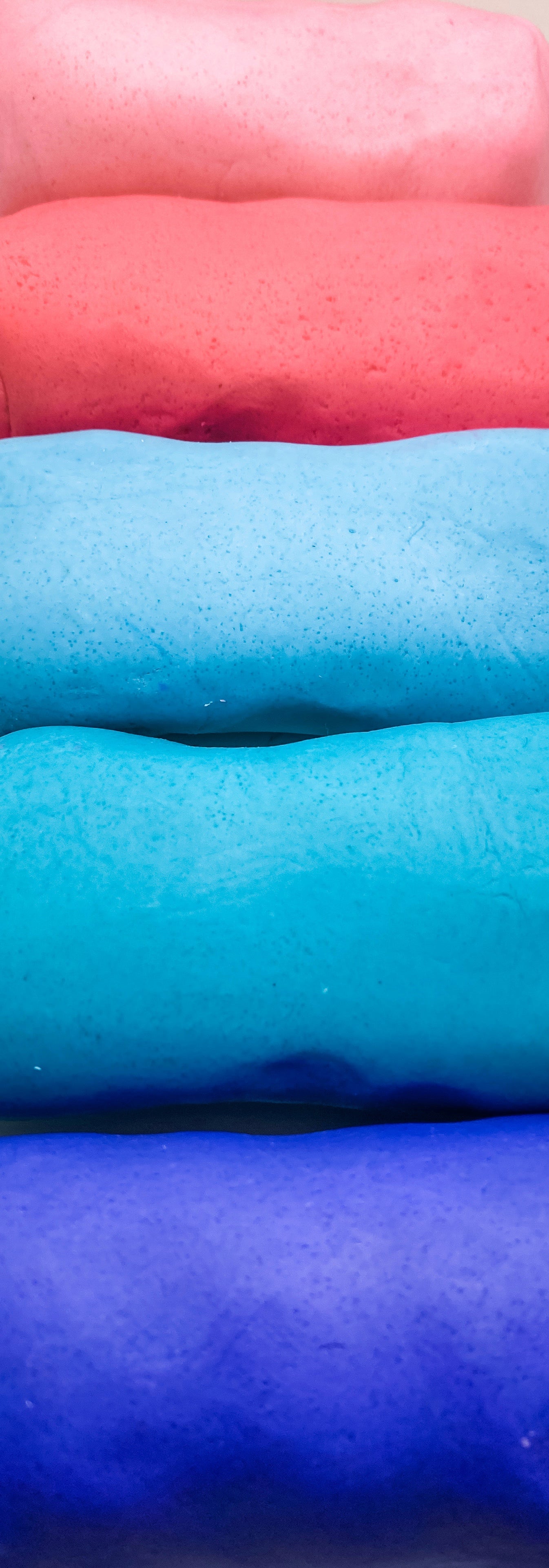 Once opened, keep our homemade playdough in ziplock bags to keep it fresh for 3+ months!